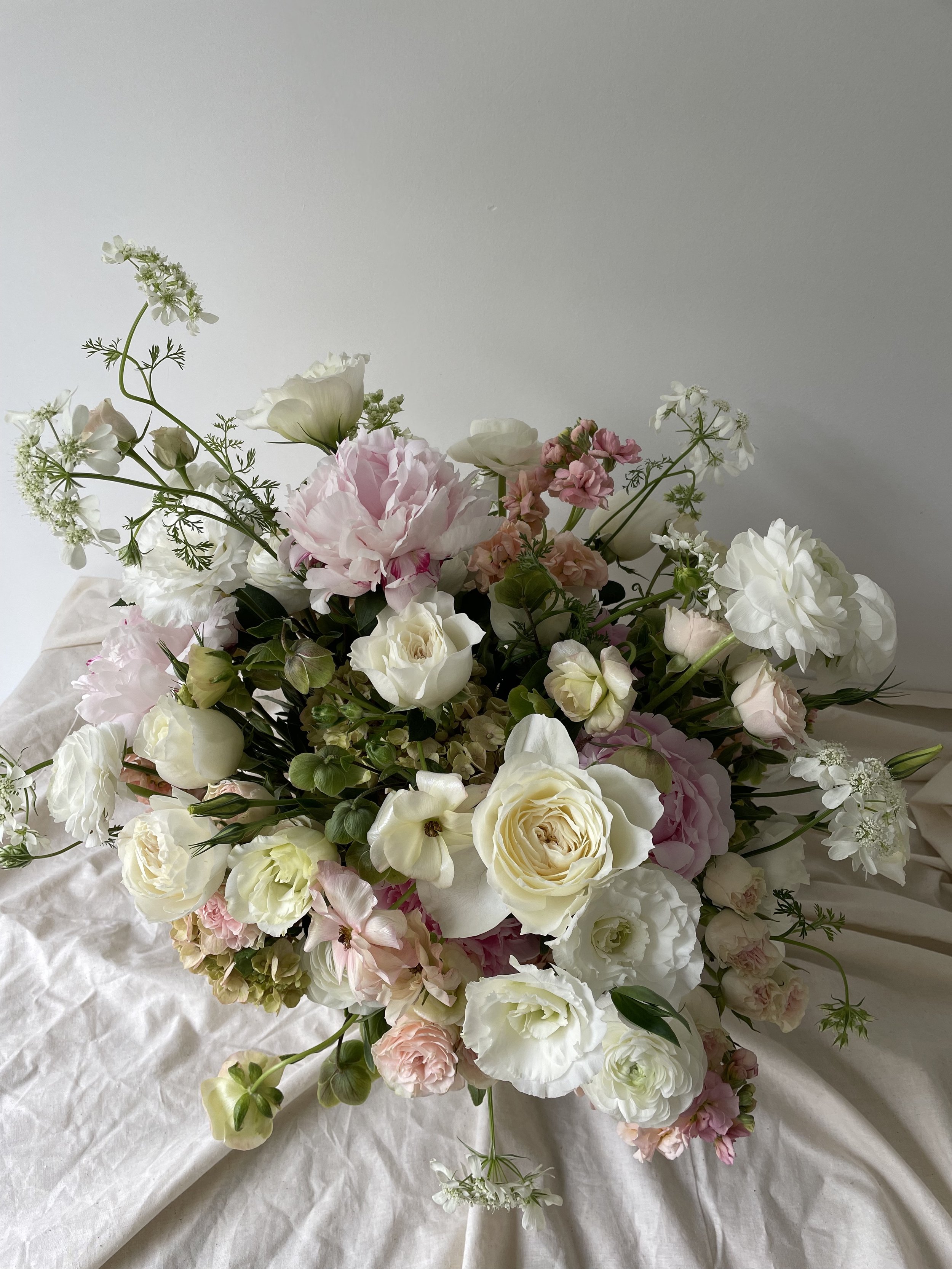 Extra large lush floral arrangement filled with designers choice seasonal premium blooms in a ceramic vase. You can select from three color way options that will be exquisitely arranged. Choose from White/Cream/Blush, Blush/Pinks/Mauve, Pink/Red/burgundy.